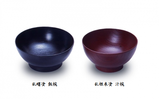 口径が狭く背の高い汁椀(偶数番号)、汁椀に比べ口径が広く背の低い飯椀(奇数番号)と